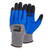 - Rękawice X-TARGET wykonane z szarej dzianiny poliestrowej, powlekane w części chwytnej oraz w części wierzchniej 3/4 lateksem w kolorze niebieskim.