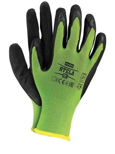 Rękawice ochronne wykonane z poliestru, powlekane lateksem.